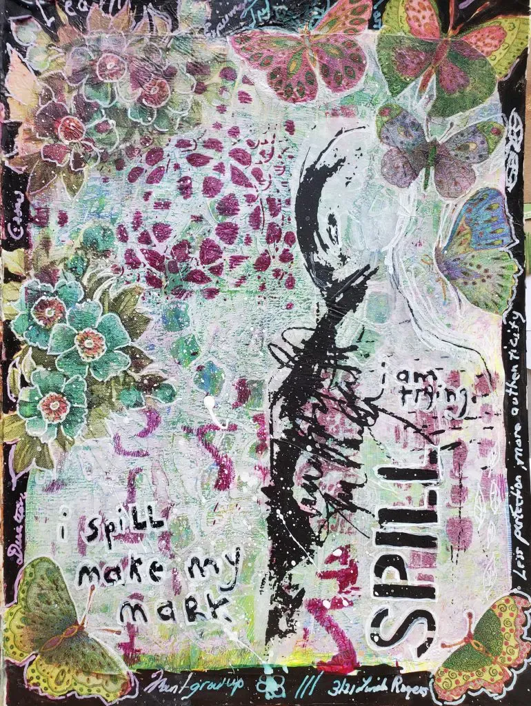 The task this week was to turn around a page you had started and abandoned. Although a lot of art journallers recommend using up paint randomly on pages, personally, I