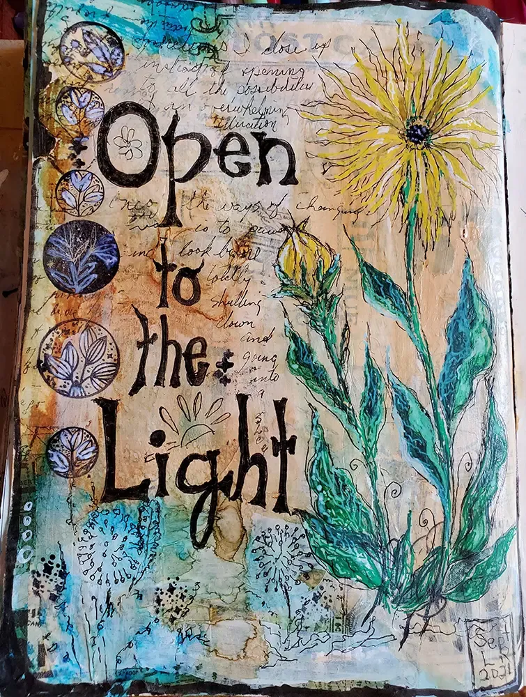 In order to bring creativity to projects undertaken for others I foster my own creativity through the practice of arts journaling and I share some of my work with our creative soul-searchers through mail art.