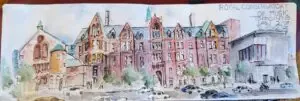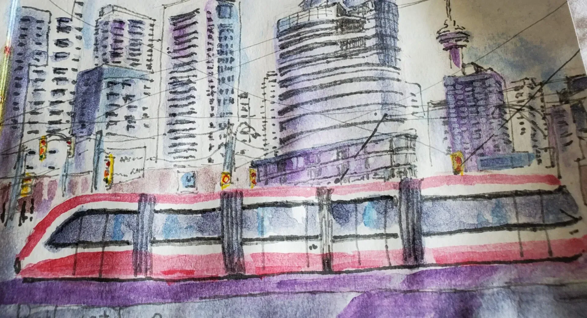 There’s a turnaround and transfer point at Bathurst and Queens Quay on Toronto’s waterfront. I sometimes used to transfer to a Bathurst car here when I worked in the King/Bathurst area about 2002-04. But these are new streetcars that take up most of a city block. I first rode these articulated streetcars in 2017-18 I think. I was working for Tapestry Opera in the Distillery District and I’d catch the streetcar on Cherry Street. It was a darn cold place to wait. I wasn’t sure about the new cars. They were easier to get on but they moved in such a herky jerky fashion, people were always losing their footing at first until both drivers and passengers adjusted.