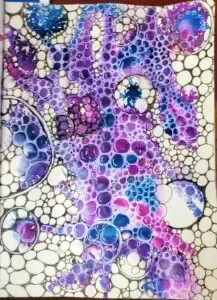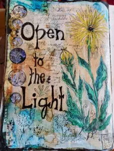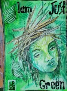 This quickie page was themed on the idea of a personal rainbow. I started with black gesso and later scrubbed on white and blue paint with a baby wipe. The next layers were my favorite colours of pinks, purple and blue. The butterfly was drawn with a Pitt big brush marker.