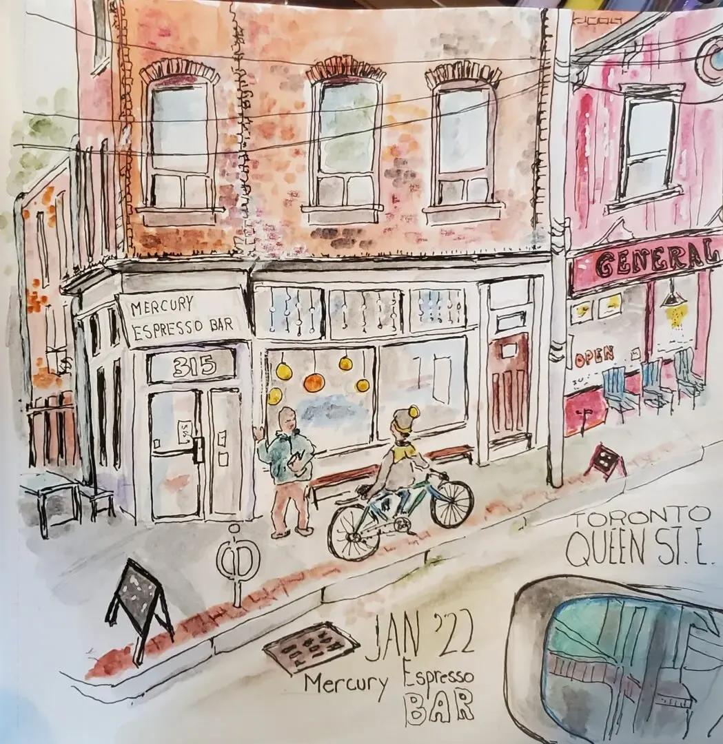 This month was voting day in Ontario and our polling station was at the Metropolitan United Church on Church Street in Toronto. There’s a couple of blocks of Church between old Toronto and the Church/Wellesley village where things get a bit seedy and there’s a concentration of pawn shops, loan outfits and nail salons. As I looked at this colourful block early in June, I noticed upstairs windows papered over and empty stores. I suspect this block is going to be developed soon. Probably they’ll keep at least the older storefronts.